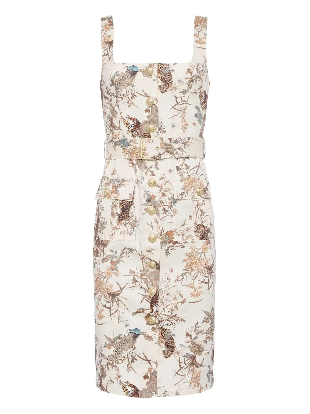 Idy bird-print belted dress Highlights - Off-white - Floral bird print - Square neck - Gold-tone buttons - Belted waist - Front pockets Imported Composition Fabric 100% Washing instructions Dry Clean Only