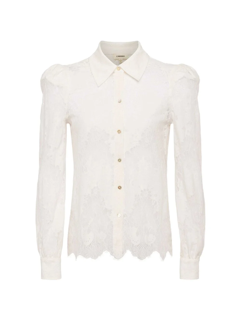 Jenica lace puff-sleeve shirt Highlights - Ivory - Lace detail - Button fastening - Long sleeves - Scalloped hem - Buttoned cuffs Imported Composition Nylon 68%, Cotton 32% Washing instructions Dry Clean Only