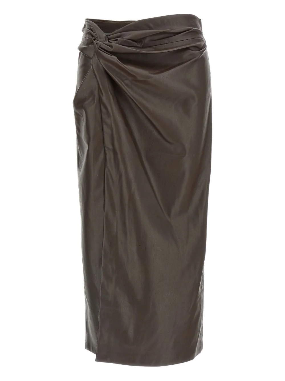 Lilou midi skirt Highlights - Brown - Leather effect - Asymmetrical knot detail - Back zip fastening Imported Composition Polyurethane 50%, Polyester 50% Washing instructions Read Manufacturer Guidelines