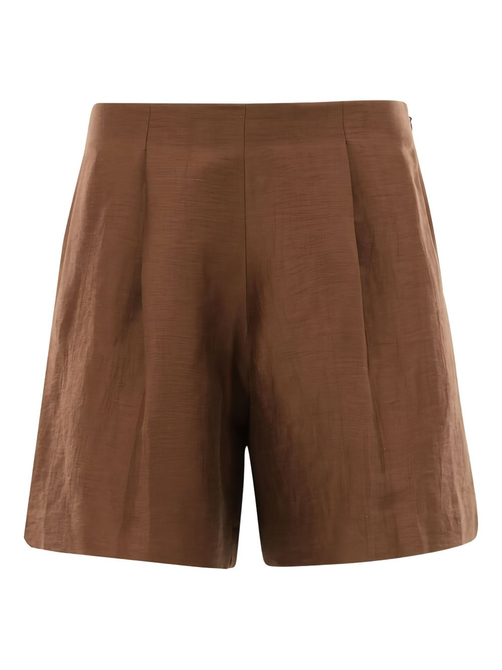 pleated-front linen shorts Highlights - Brown - Pleated front - High waist - Straight hem - Side zip fastening Imported Composition Linen/Flax 88%, Polyamide 12% Washing instructions Read Manufacturer Guidelines