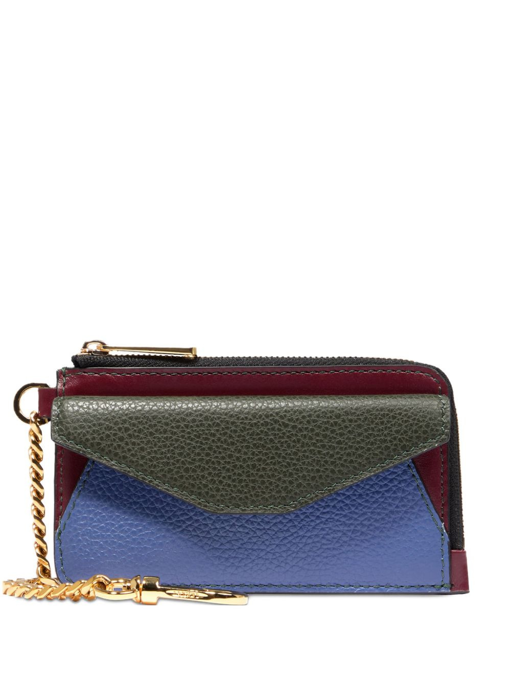 Enveloppe chain-embellished card holder Highlights - Purple - Gold chain - Zip fastening compartment - Card slots - Envelope flap Made in Italy Composition Outer: Leather 100% Lining: Polyester 100% SIZE & FIT Measurement DEPTH 0.39 in(1 cm) HEIGHT 2.75 in(7 cm) WIDTH 5.11 in(13 cm)