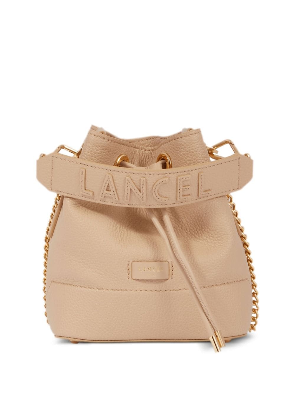 Ninon leather mini bag Highlights - Sand beige - Leather - Grained texture - Applique logo - Single detachable top handle - Leather and chain-link shoulder strap - Top drawstring fastening - Gold-tone hardware - Main compartment - Internal slip pocket - Canvas lining Made in Italy Composition Outer: Leather 100% Lining: Cotton 100% SIZE & FIT Measurement DEPTH 3.93 in(10 cm) HEIGHT 7.48 in(19 cm) WIDTH 6.29 in(16 cm)