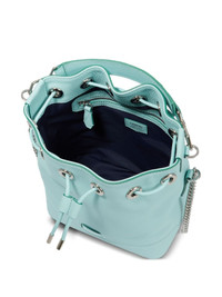 small Ninon leather bucket bag Highlights - Light blue - Leather - Grained texture - Applique logo - Single detachable top handle - Leather and chain-link shoulder strap - Top drawstring fastening - Silver-tone hardware - Main compartment - Internal zip-fastening pocket - Canvas lining Made in Italy Composition Outer: Leather 100% Lining: Cotton 100%