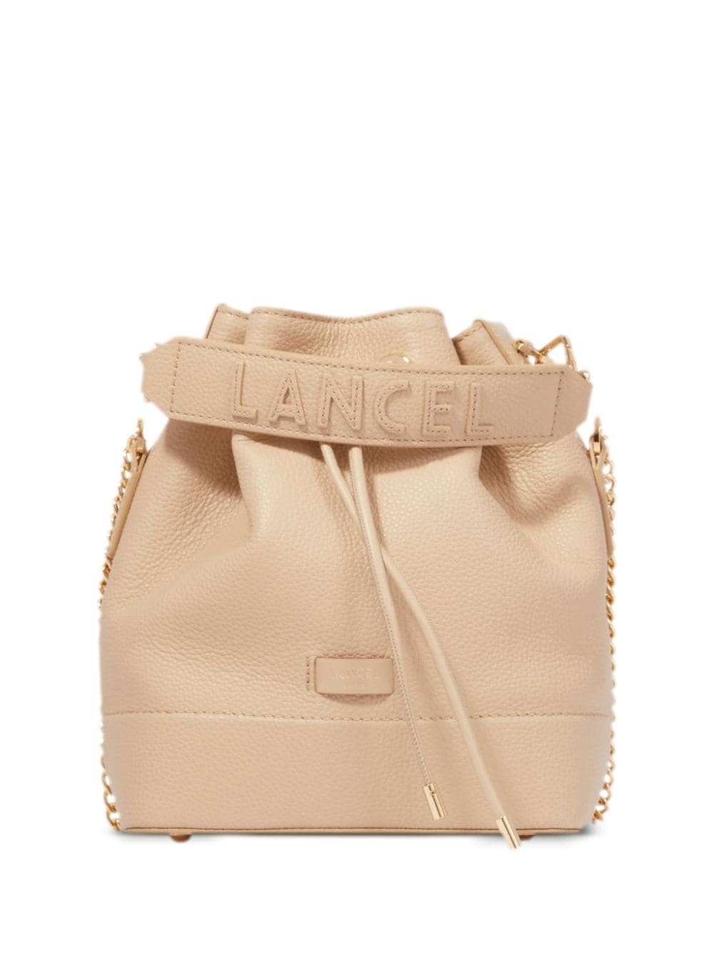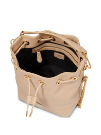 small Ninon leather bucket bag Highlights - Sand beige - Leather - Grained texture - Applique logo - Single detachable top handle - Leather and chain-link shoulder strap - Top drawstring fastening - Gold-tone hardware - Main compartment - Zip-fastening pocket - Canvas lining Made in Italy Composition Outer: Leather 100% Lining: Cotton 100% SIZE & FIT Measurement DEPTH 4.92 in(12.5 cm) HEIGHT 8.85 in(22.5 cm) WIDTH 7.28 in(18.5 cm)