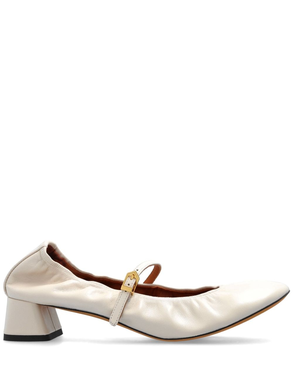 40mm leather pumps Highlights - Light beige - Buckle-strap fastening - Elasticated trim - Branded heel counter - Round toe Made in Italy Composition Outer: Lamb Skin 100% Sole: Calf Leather 100% Lining: Calf Leather 100% SIZE & FIT Measurement HEEL 1.57 in(4 cm)