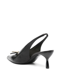 60mm leather pumps Highlights - Black - Calf leather - Pointed toe - Engraved logo bow detailing - Elasticated slingback strap - Branded footbed - Mid sculpted heel - Leather sole - Slip-on style Made in Italy Composition Outer: Calf Leather 100% Sole: Calf Leather 100% Lining: Calf Leather 100% SIZE & FIT Measurement HEEL 2.36 in(6 cm)
