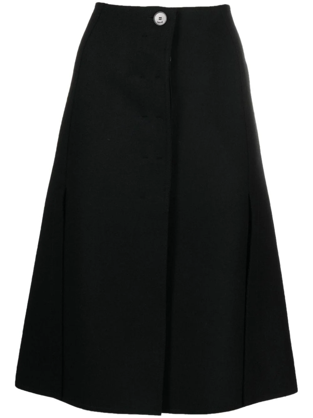 A-line midi skirt Crafted to an A-line silhouette from a wool blend, this Lanvin skirt is characterized by the concealed fastening running all the length of the front. The midi-length piece also presents a rear slit and button at the front. Highlights - Black - Wool blend - A-line - High-waisted - Front button fastening - Concealed front fastening - Rear slit - Knee-length - Straight hem Made in Italy Composition Outer: Wool 90%, Polyamide 10% Lining: Viscose 100% SIZE & FIT Model measurements Height 5 ft 10 in(1.78 m) Bust/Chest 33.07 in(84 cm) Hips 35.82 in(91 cm) Waist 25.98 in(66 cm) FittingInformation This midi-length skirt is intended to be worn high on the waist Made from a midweight non-stretch fabric This piece fits true to size – take your usual size Washing instructions Dry Clean Only