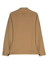 applique logo wool jacket Highlights - Cedar brown - Wool - Twill weave - Applique logo to the rear - Branded zip puller - Pointed flat collar - Long sleeves - Buttoned cuffs - Two side welt pockets - Two-way zip fastening Imported Composition Outer: Wool 100% Lining: Viscose 100% Washing instructions Dry Clean Only
