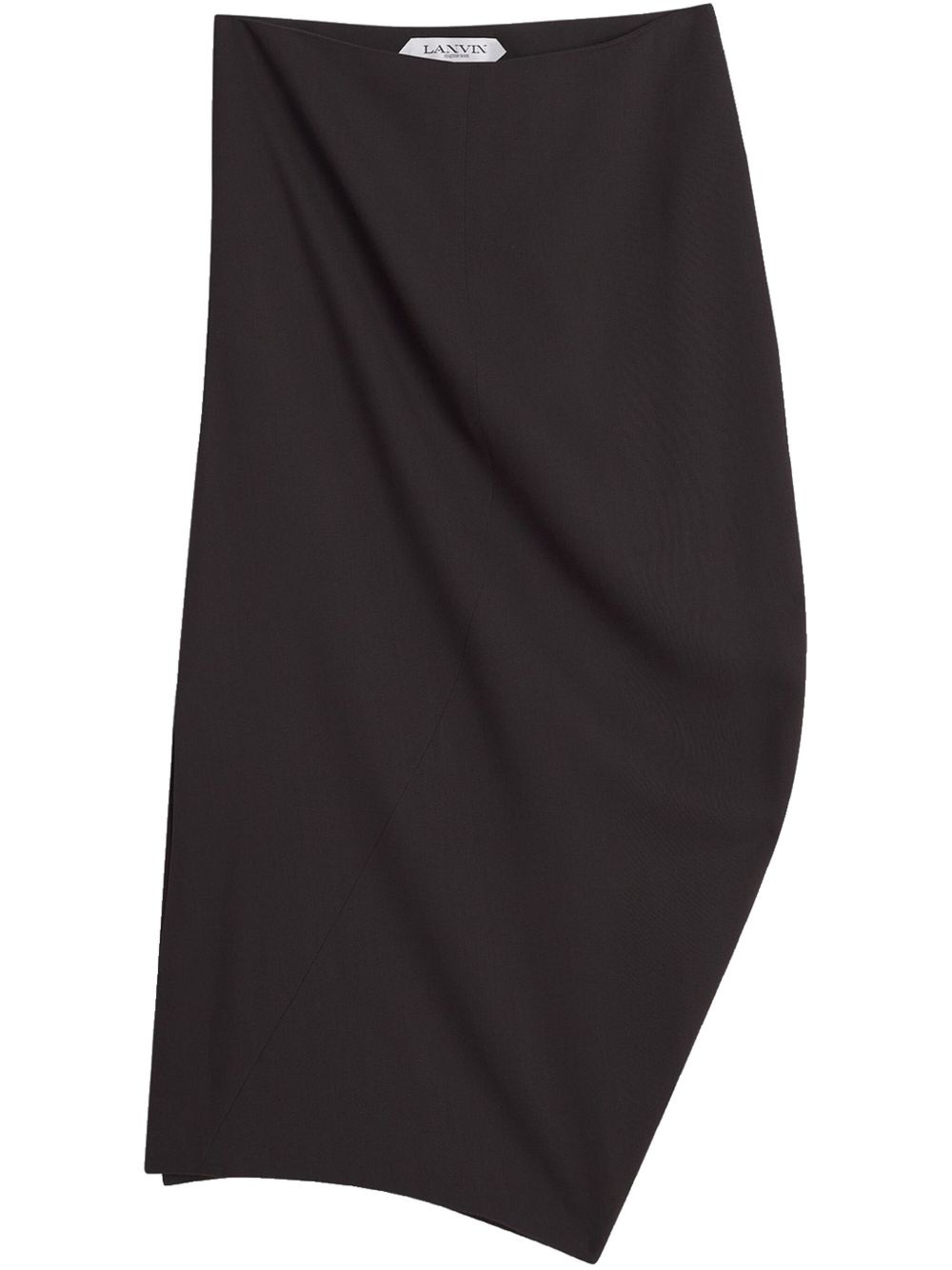 asymmetric skirt Highlights - Black - Concealed side zip fastening - Rear button-fastening jetted pocket - Side slit - High-waisted Made in Italy Composition Viscose 64%, Virgin Wool 36%