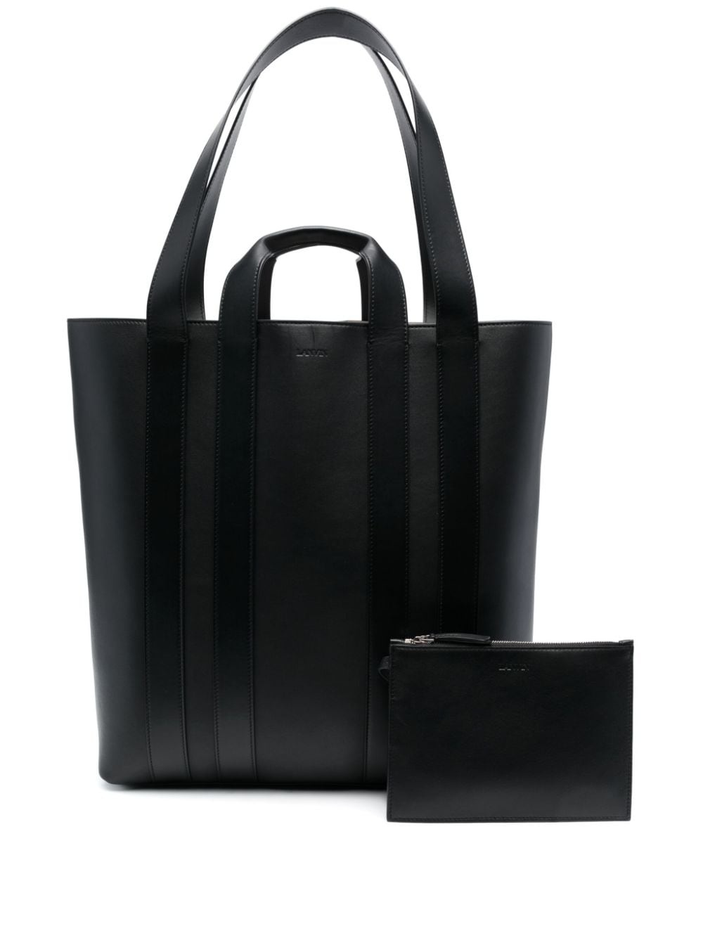 Ballade North South leather tote bag Refined and versatile, Lanvin’s Ballade North South tote bag arrives here in a smooth black leather construction. It boasts pairs of short and long handles that allow it to be worn multiple ways and is finished with a subtly debossed logo to the front. Highlights - Black - Calf leather - Two top handles - Two flat shoulder straps - Removable pouch - Debossed logo to the front - Main compartment Imported Composition Outer: Calf Leather 100% SIZE & FIT Model measurements Height 6 ft 2 in(1.87 m) Bust/Chest 36.41 in(92.5 cm) Hips 37 in(94 cm) Waist 29.52 in(75 cm) Measurement DEPTH 5.9 in(15 cm) HANDLE 3.54 in(9 cm) HEIGHT 16.14 in(41 cm) STRAP 14.17 in(36 cm) WIDTH 15.74 in(40 cm)