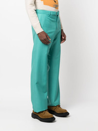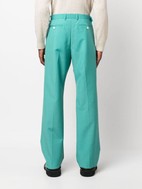 belted straight-leg trousers Lanvin elevates a classic straight-leg silhouette with these trousers, crafted from a soft blend of wool and mohair in a bright mint green hue. Sitting at mid-rise, they're secured with a tonal belt. Highlights - Mint green - Wool-mohair blend - Mid-rise - Belted waist - Slip pockets to the sides - Straight leg Made in Italy Composition Outer: Bos Taurus 100%, Wool 75%, Mohair 25% Lining: Viscose 100%, Cotton 100% SIZE & FIT Model measurements Height 6 ft 0 in(1.84 m) Bust/Chest 34.64 in(88 cm) Hips 35.03 in(89 cm) Waist 27.95 in(71 cm) FittingInformation Designed for a straight-leg, allowing for an unrestricted and comfortable fit over the leg The unfinished hems allow for the length to be altered Made from a midweight non-stretch fabric This piece fits true to size – take your usual size Washing instructions Dry Clean Only
