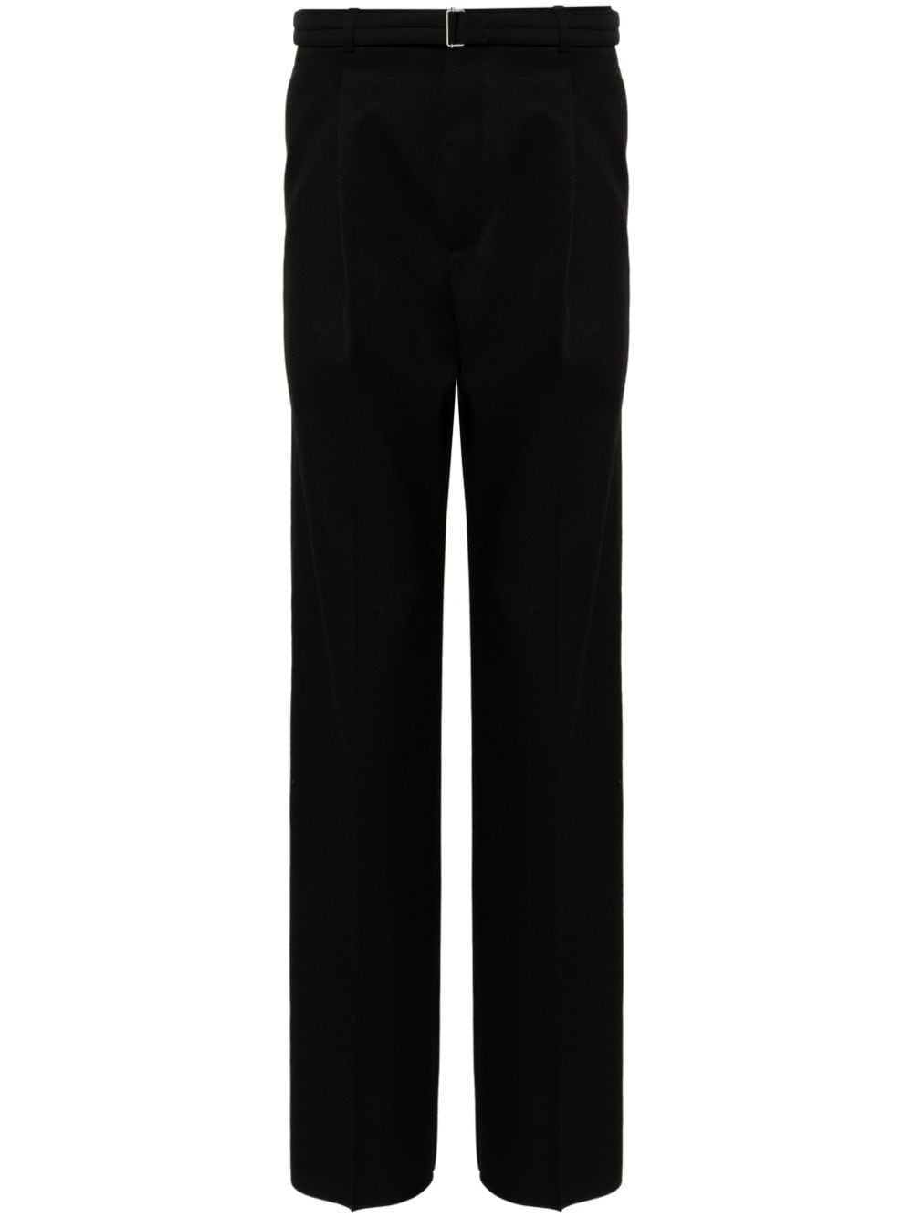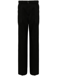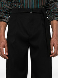 x Future belted straight trousers Highlights - Black - Wool - Tailored design - Pressed crease - Belted waist - Concealed front button, hook and zip fastening - Straight leg - Two side slit pockets - Two rear button-fastening jetted pockets - Straight hem - Long length - When buying this unisex item, keep in mind that it is graded in standard men's sizing. Made in Italy Composition Lining: Viscose 100%, Cotton 100% Outer: Wool 100%, Buffalo Horn 100% SIZE & FIT Model measurements Height 5 ft 10 in(1.78 m) Bust/Chest 31.49 in(80 cm) Hips 37 in(94 cm) Waist 23.62 in(60 cm) FittingInformation This piece is unisex and is designed with a wide-leg, whether you usually select women's or men's sizes The belt offers adjustability for fitted preferences Made from a midweight non-stretch fabric This piece fits true to size – take your usual size