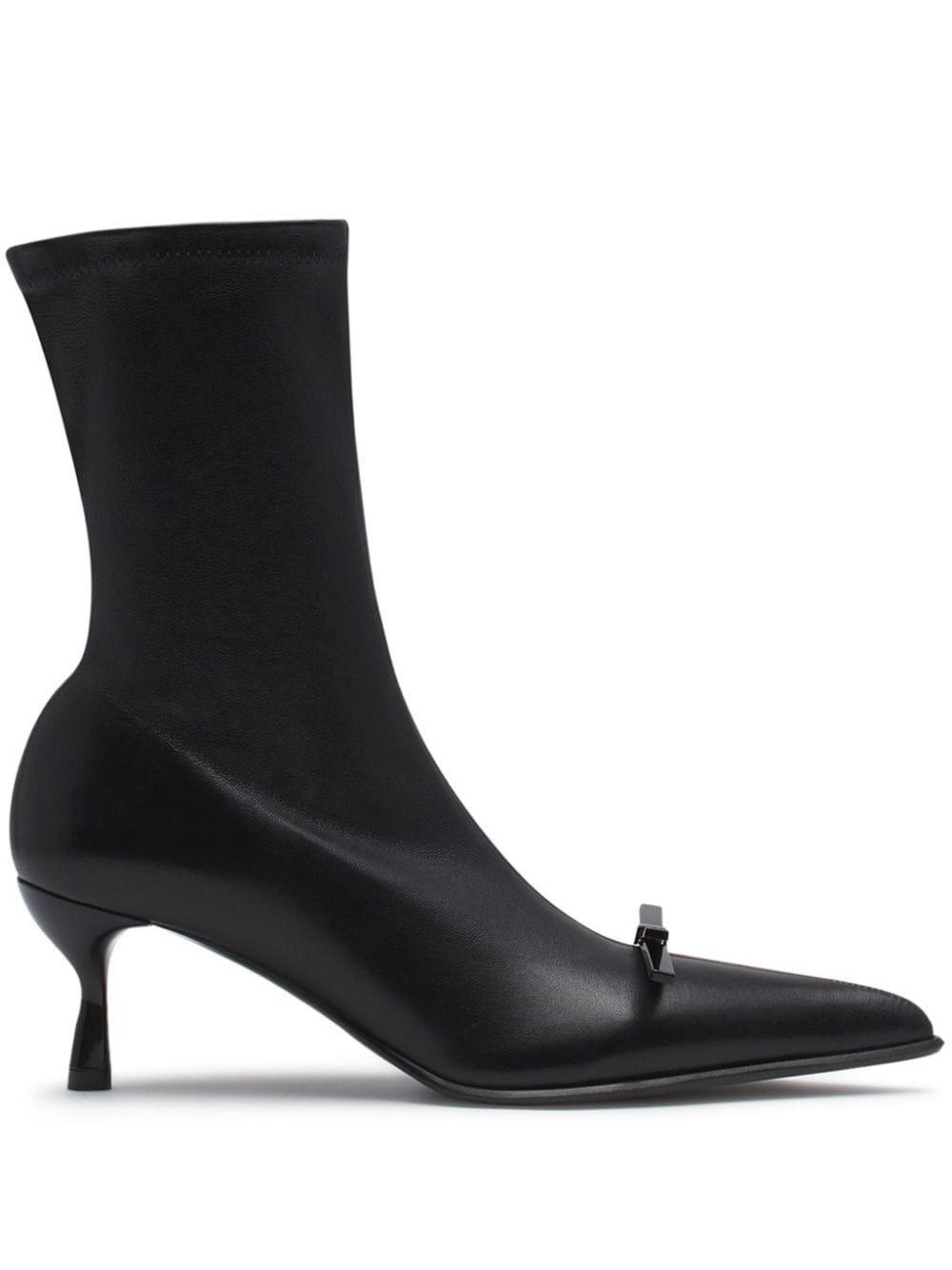 bow-detail leather ankle boots Highlights - Black - Calf leather - Smooth grain - Pointed toe - Bow detailing - Side zip fastening - Ankle-length - Mid sculpted heel - Branded leather insole - Leather sole Made in Italy Composition Outer: Lamb Skin 95%, Thermoplastic Polyurethane (TPU) 5% Lining: Calf Leather 100%, Fabric 100% Sole: Calf Leather 100%