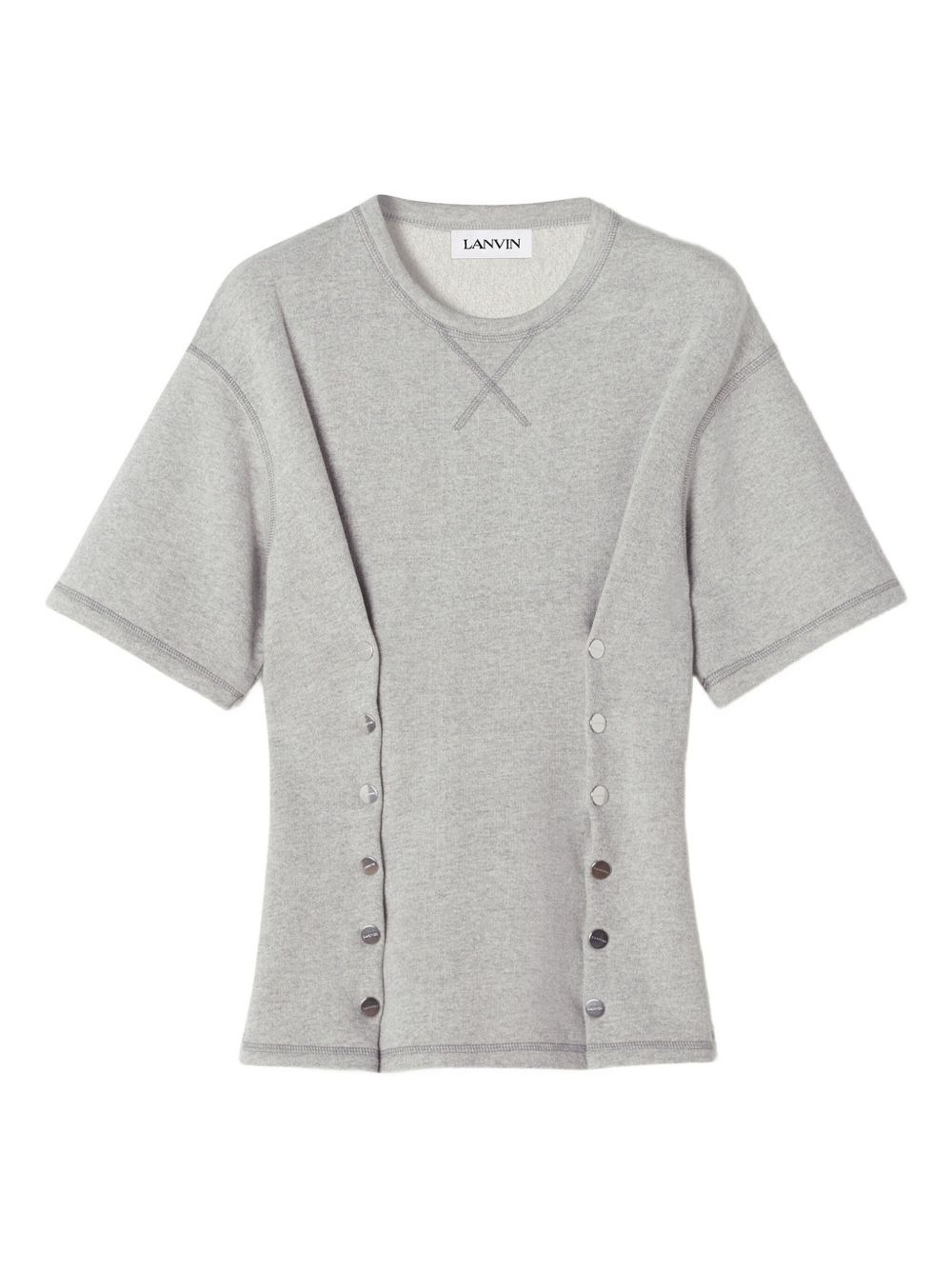 button-detailed short-sleeve top Highlights - Grey - Short sleeves - Button embellishment - Round neck - Seam detail - Natural cotton Made in Italy Composition Cotton 100% Washing instructions Read Manufacturer Guidelines