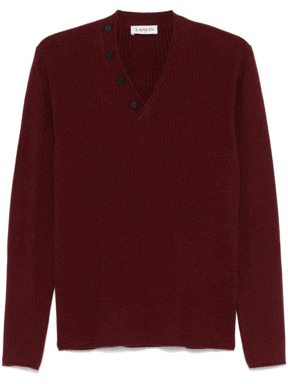 button-embellishment sweater Highlights - Bordeaux red - Wool-cashmere blend - Ribbed knit - Decorative button detailing to the neck - V-neck - Drop shoulder - Long sleeves - Straight hem Imported Composition Wool 70%, Cashmere 30%