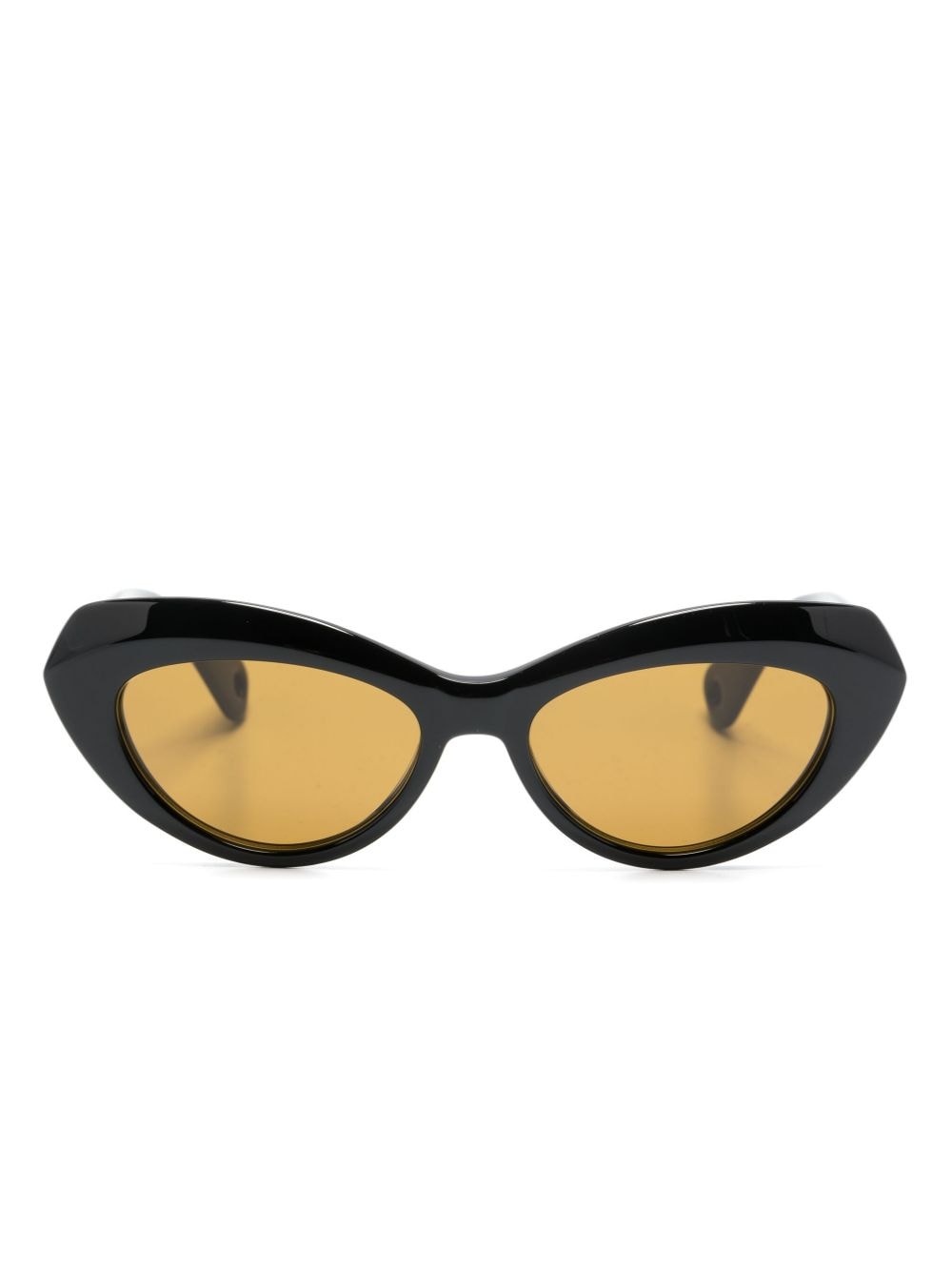 cat-eye logo-detail sunglasses These sunglasses from Lanvin are crafted with a black cat-eye frame with subtly rounded edges. They're fitted with tinted lenses and detailed with a logo at the arms. Highlights - Black - Acetate - Brown tinted lenses - Cat-eye frame - Gold-tone logo lettering - Sculpted arms - Curved tips - These glasses come with a protective case. Made in Italy Composition Acetate 100% SIZE & FIT Measurement Arm Length 5.51 in(14 cm) Bridge Width 0.66 in(1.7 cm) Lens Diameter 2.08 in(5.3 cm) Total Width 5.51 in(14 cm)