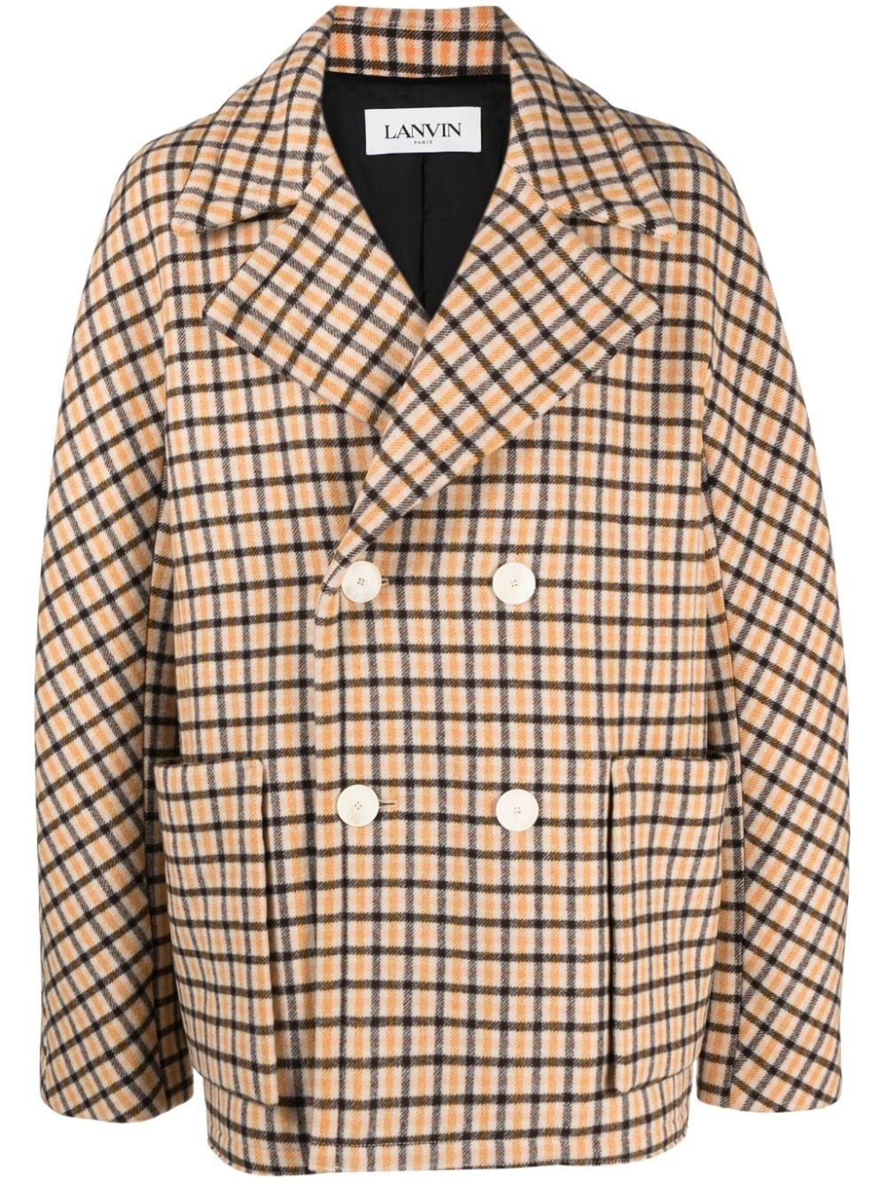 check-pattern virgin-wool peacoat Lanvin injects its luxurious minimalism into this double-breasted peacoat. Spun from sturdy virgin wool, wide notched lapels and a check pattern elevate its tailored cut. Highlights - Beige - Virgin wool - Check pattern - Wide notch lapels - Double-breasted button fastening - Long sleeves - Two front patch pockets - Straight hem Made in Italy Composition Outer: Virgin Wool 100% Lining: Viscose 100%