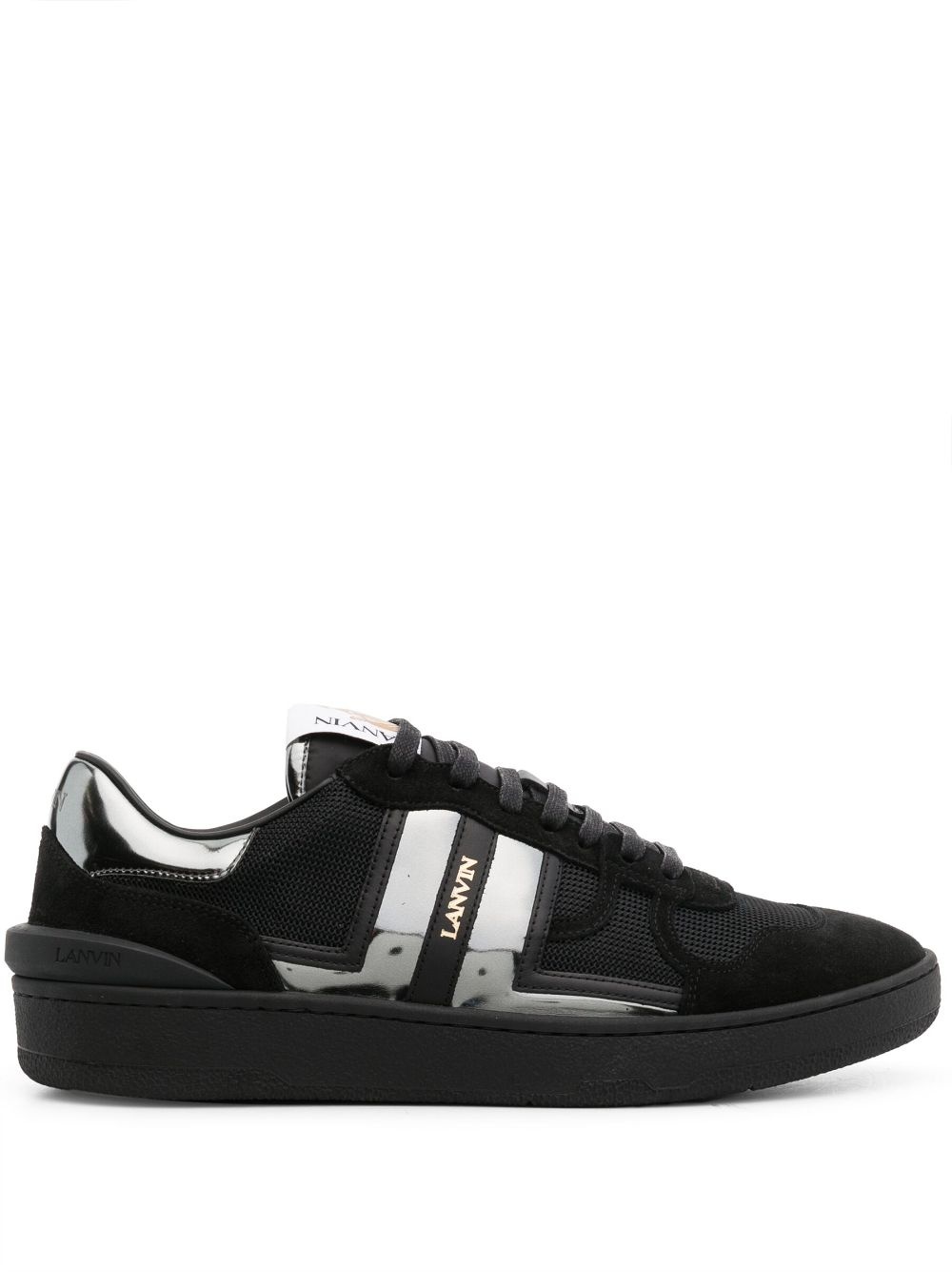 Clay lace-up sneakers Lanvin's Clay sneakers are presented in a low-top silhouette here. Crafted from leather with mesh panelling, the casual pair is detailed with logo patches to the side for a branding-focused finish. Highlights - Black - Calf leather - Mesh panelling - Round toe - Front lace-up fastening - Gold-tone logo lettering - Logo patch to the side - Logo patch at the tongue - Flat rubber sole Imported Composition Outer: Calf Leather 100%, Fabric 100% Lining: Fabric 100%, Calf Leather 100% Sole: Rubber 100% SIZE & FIT Measurement HEEL 1.37 in(3.5 cm) Sole height 0.78 in(2 cm)