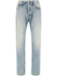 cotton jeans Highlights - Light blue - Front button fastening - Classic five pockets - Logo patch to the rear - Tapered leg Made in Italy Composition Cotton 100%