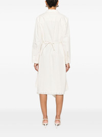 cotton midi dress Highlights - Light beige - Front button fastening - Drawstring waist - Buttoned cuffs - V-neck Made in Italy Composition Cotton 100% SIZE & FIT Model measurements Height 5 ft 10 in(1.78 m) Bust/Chest 32.67 in(83 cm) Hips 35.43 in(90 cm) Waist 23.22 in(59 cm) FittingInformation Designed to be unstructured, offering a loose fit throughout The adjustable tie waist gives a more adaptable and personalised fit Made from a midweight non-stretch fabric