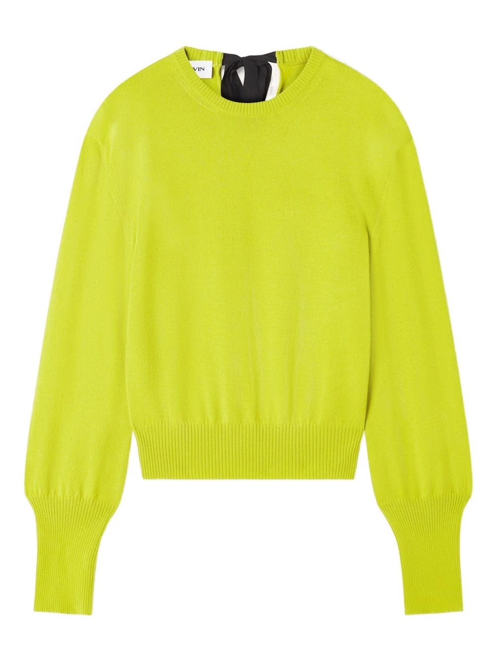 crew-neck long-sleeve sweater Highlights - Green - Tie fastening - Round neck - Long sleeves - Ribbed hem and cuffs Made in Italy Composition Virgin Wool 97%, Polyamide 3% Washing instructions Read Manufacturer Guidelines