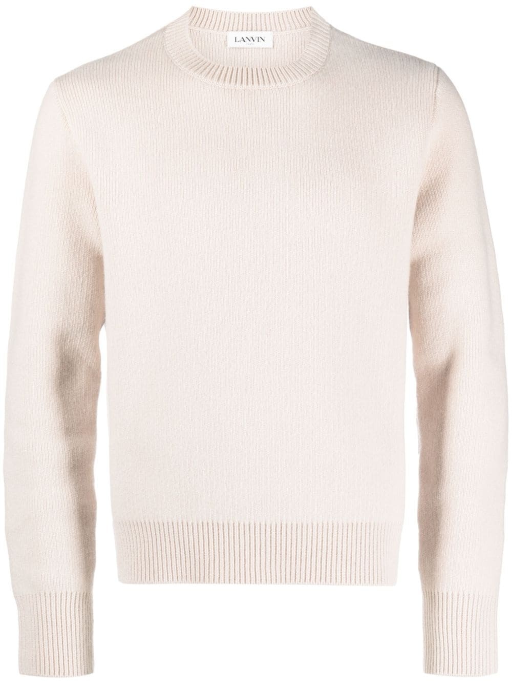 crew-neck wool-cashmere jumper Lanvin embraces a minimalist approach with this light-beige jumper, allowing the premium composition to take center stage. Crafted from a blend of virgin wool and cashmere, the crew-neck silhouette is elegantly adorned with a tonal seam that traverses the design from one cuff to the other. Highlights - Light beige - Virgin wool-cashmere blend - Knitted construction - Crew neck - Long sleeves - Ribbed cuffs and hem - Straight hem Imported Composition Virgin Wool 70%, Cashmere 30% SIZE & FIT Model measurements Height 6 ft 2 in(1.88 m) Bust/Chest 37.79 in(96 cm) Hips 35.82 in(91 cm) Waist 29.92 in(76 cm) FittingInformation Designed for a relaxed fit, this piece allows for comfort and movement when worn Made with a midweight knit, this piece offers some stretch This piece fits true to size – take your usual size Measurement CHEST 45.66 in(116 cm) SLEEVE LENGTH 25.98 in(66 cm) Washing instructions Hand Wash