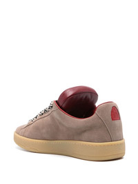x Future Hyper Curb suede sneakers Inspired by the Curb Lite, the Hyper Curb is a fruit of Lanvin's collaboration with Atlanta artist Future. They riff on ‘90s skate styles with oversized herringbone laces and padded proportions. This iteration is made from brown suede with the signature Mother and Child embroidery at the tongue. Highlights - Taupe brown/dark red - Suede - Contrasting branded heel counter - Signature mother and child embroidery at the padded tongue - Waxed laces - Round toe - Leather lining - Branded leather insole - Gum-rubber sole - Front lace-up fastening - Padded ankle Made in Italy Composition Outer: Bos Taurus 76%, Polyester 24% Lining: Bos Taurus 100% Sole: Rubber 100% SIZE & FIT Measurement HEEL 1.57 in(4 cm) Sole height 1.18 in(3 cm)
