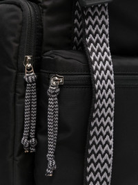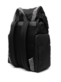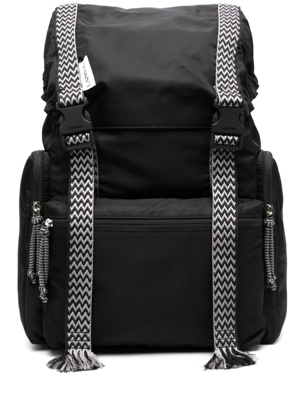 Curb strap-detail backpack Boasting an all-black construction, this backpack from Lanvin features contrasting details reminiscent of the brand's signature zigzag pattern that appears on the laces of their iconic Curb sneakers. In a two-tone, black and grey colourway, the pattern takes focus set against the monochromatic design. Highlights - Black/grey - Logo tag - Foldover top - Buckle fastening - Single top handle - Two adjustable shoulder straps - Two side zip-fastening pockets - Front zip-fastening compartment - Main compartment Made in Italy Composition Outer: Polyester 100% SIZE & FIT Model measurements Height 6 ft 2 in(1.88 m) Bust/Chest 37.79 in(96 cm) Hips 35.82 in(91 cm) Waist 29.92 in(76 cm) Measurement DEPTH 5.51 in(14 cm) HANDLE 2.36 in(6 cm) HEIGHT 13.77 in(35 cm) STRAP 13.38 in(34 cm) WIDTH 12.59 in(32 cm)