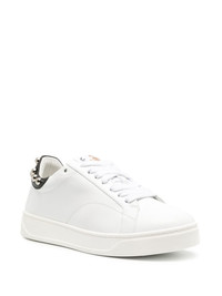 DDBO studded leather sneakers Lanvin revamps its signature DDBO sneakers through an edgy lens, embellishing the black heel counter on this white pair with silver-tone studs. Highlights - White/black - Calf leather - Silver-tone stud detailing - Contrasting branded heel counter - Signature mother and child logo patch at the tongue - Round toe - Rubber sole - Front lace-up fastening Made in Italy Composition Leather 100% SIZE & FIT Measurement HEEL 1.18 in(3 cm) Sole height 0.78 in(2 cm)