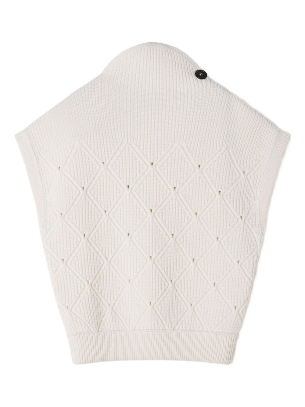 diamond-pattern tank top Highlights - White - High neck - Button fastening - Sleeveless - Diamond pattern - Ribbed knit Imported Composition Wool 100% Washing instructions Read Manufacturer Guidelines