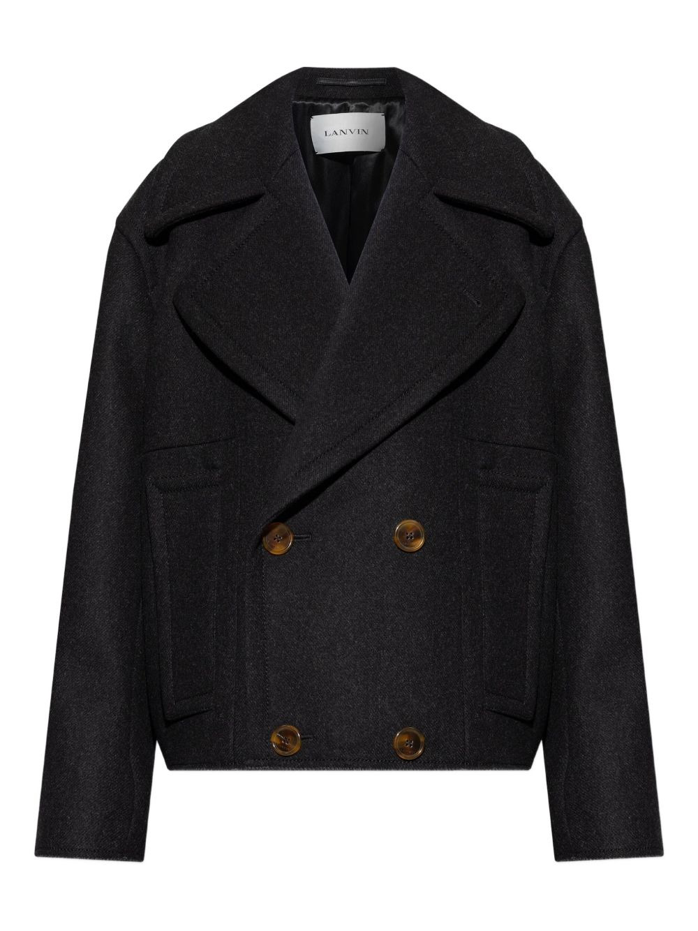 double-breasted button jacket Highlights - Dark grey - Double-breasted - Button fastening - Notched lapels - Front pockets Made in Italy Composition Virgin Wool 100% Washing instructions Read Manufacturer Guidelines