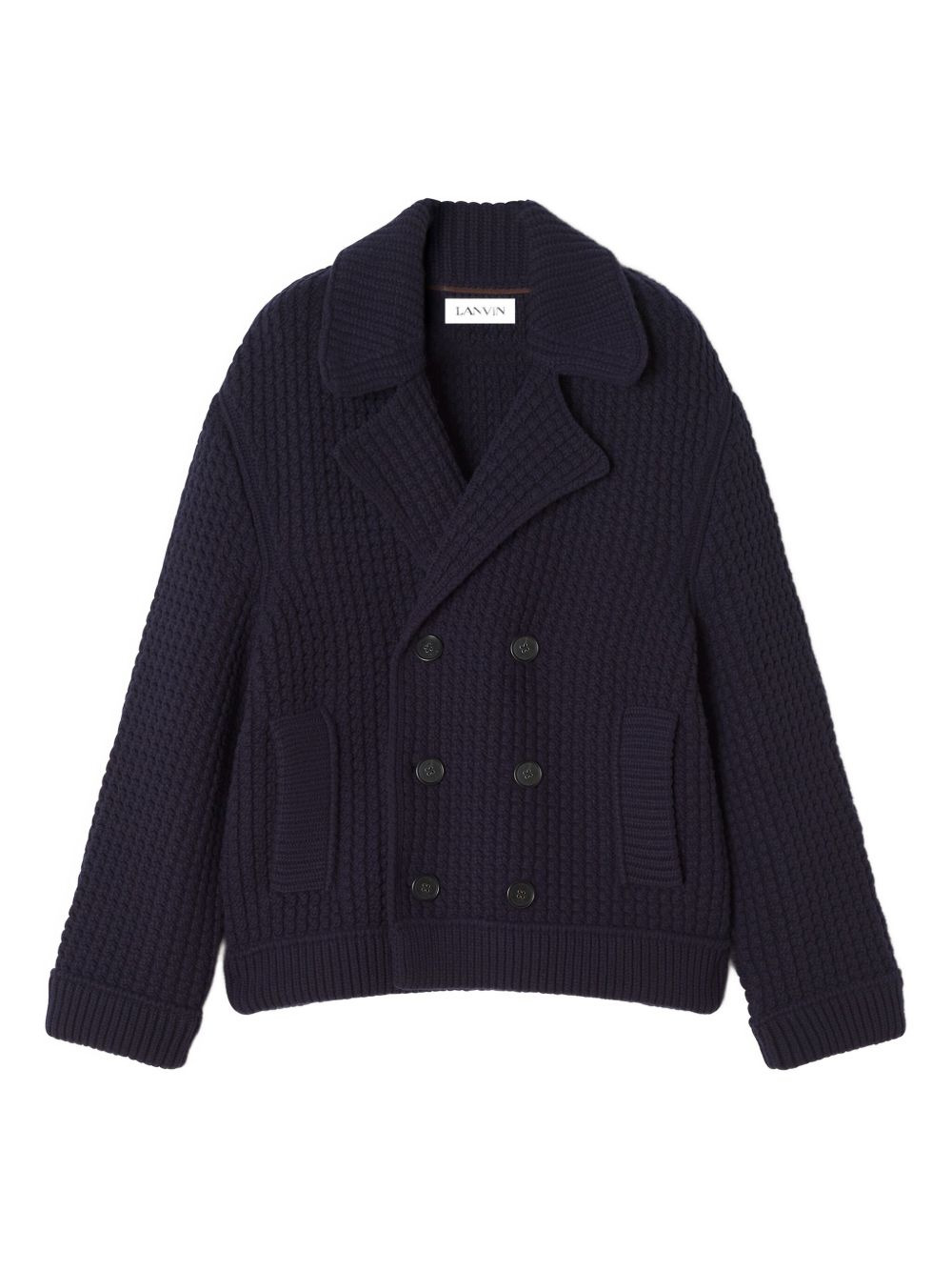 double-breasted cardigan Highlights - Dark blue - Double-breasted closure - Four buttons - Patch pockets Imported Composition Wool 100% Washing instructions Read Manufacturer Guidelines