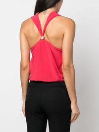 draped sleeveless silk top Crafted in Italy from pure silk, Lanvin's draped top features a scarf-inspired neckline with twisted shoulder straps that are secured with a Melodie button. Highlights - Pink - Silk - Draped design - Round neck - Two twisted shoulder straps - Button fastening - Sleeveless Made in Italy Composition Silk 100% SIZE & FIT Model measurements Height 5 ft 11 in(1.8 m) Bust/Chest 33.07 in(84 cm) Hips 37.4 in(95 cm) Waist 25.19 in(64 cm) FittingInformation Designed for a slim fit that sits just away from the body offering a close yet comfortable fit Made from a lightweight non-stretch fabric This piece fits true to size – take your usual size Washing instructions Dry Clean Only