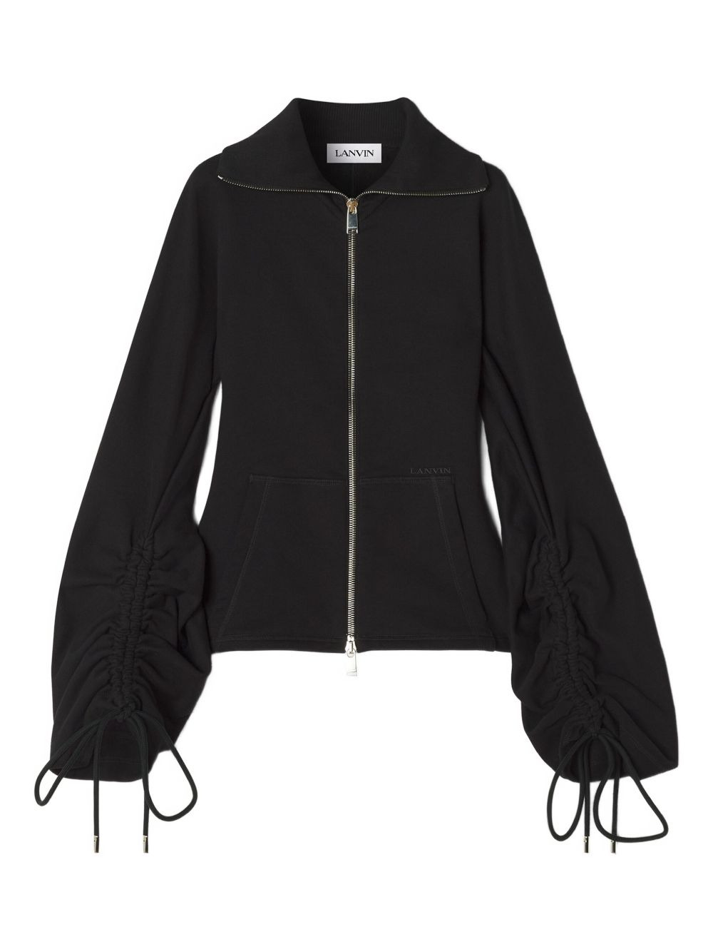 drawstring-cuff zip-front jacket Highlights - Black - Zip front fastening - Long sleeves - Drawstring cuffs - Gathered sleeves Made in Italy Composition Cotton 90%, Cashmere 10% Washing instructions Read Manufacturer Guidelines