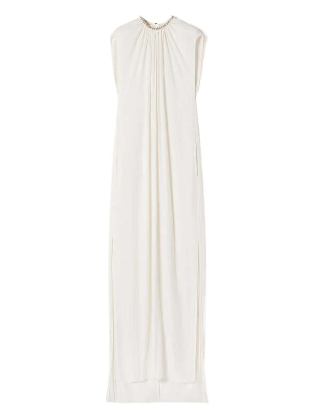 embellished-neck gathered maxi dress Highlights - White - Embellished collar - Zip fastening - Side slit - Gathered detail - Sleeveless Imported Composition Polyester 100%, Silk 100% Washing instructions Read Manufacturer Guidelines