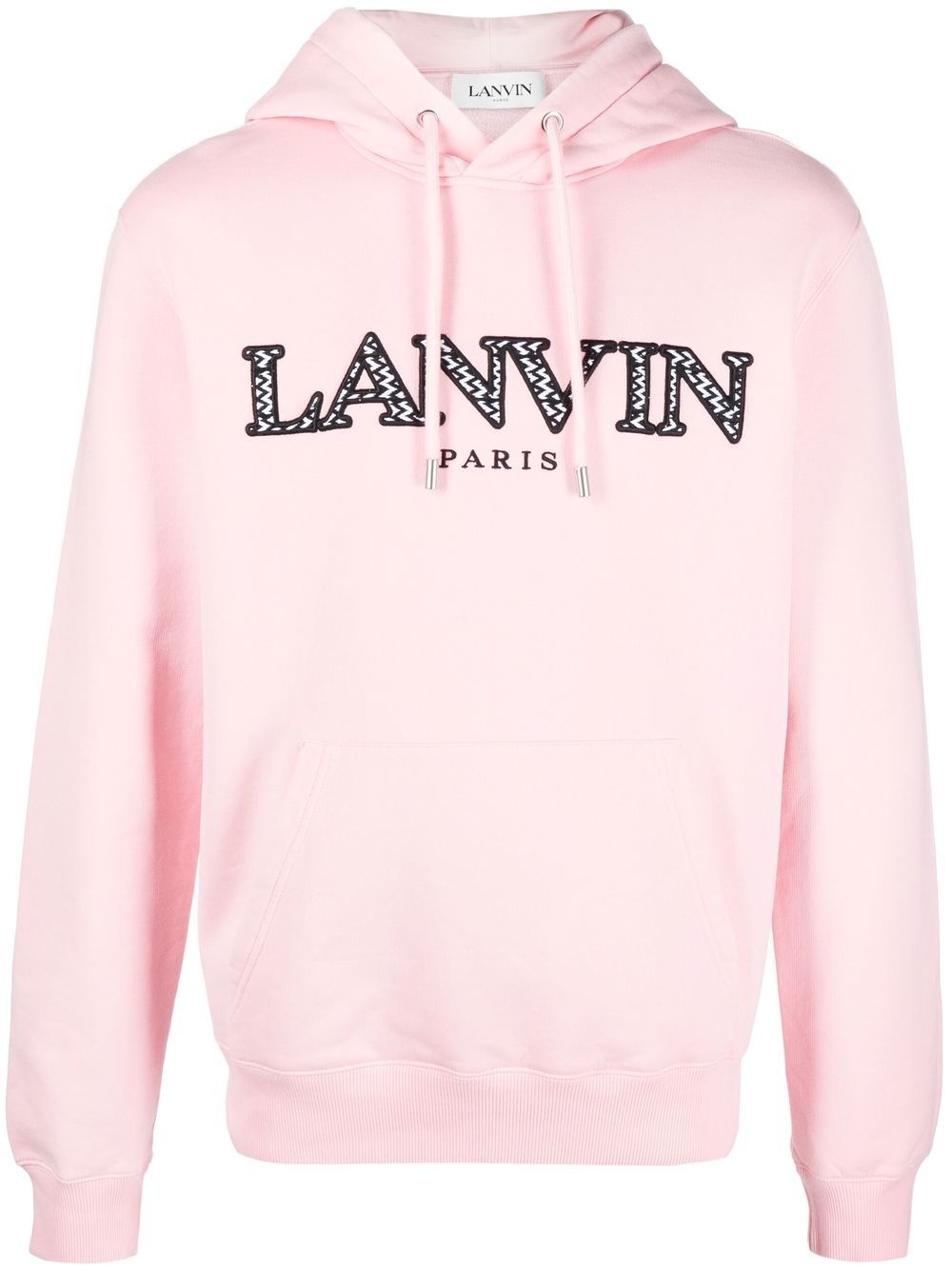 embroidered-logo cotton hoodie Lanvin boasts signature traits with this pink hoodie. Featuring the Maison's logo embroidered at the chest in black, the garment is made instantly recognisable to the brand. Imported Composition Lining: Cotton 96%, Spandex/Elastane 4% Outer: Cotton 100%, Polyester 100% SIZE & FIT Model measurements Height 6 ft 1 in(1.85 m) Bust/Chest 35.82 in(91 cm) Hips 37.79 in(96 cm) Waist 29.13 in(74 cm) Washing instructions Machine Wash