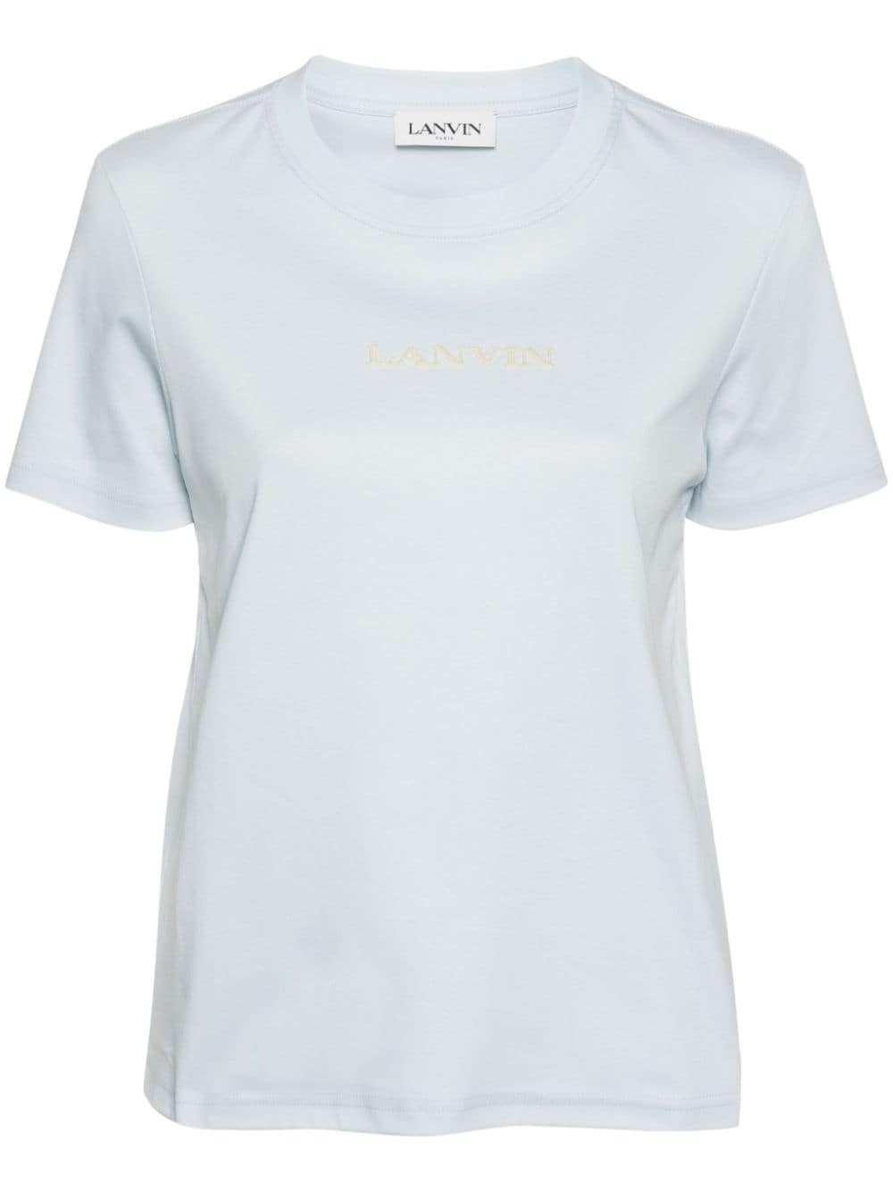 embroidered-logo cotton T-shirt Highlights - Light blue - Cotton - Round neck - Embroidered logo to the front - Short sleeves - Straight hem Made in Italy Composition Polyester 100%, Cotton 100% SIZE & FIT Model measurements Height 5 ft 9 in(1.76 m) Bust/Chest 31.1 in(79 cm) Hips 36.61 in(93 cm) Waist 24.8 in(63 cm) FittingInformation Designed for a relaxed fit, this piece allows for comfort and movement when worn Made from a midweight non-stretch fabric, this piece offers minimal elasticity when worn This piece fits true to size – take your usual size