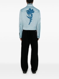 floral-applique zip-up shirt jacket Highlights - Powder blue - Tonal stitching - Sequinned floral applique - Spread collar - Front two-way zip fastening - Long sleeves with press-stud fastening cuffs - Two side slit pockets - Straight hem - Satin lining Made in Italy Composition Outer: Polyester 100%, Viscose 68%, Linen/Flax 32% Lining: Viscose 100% SIZE & FIT Model measurements Height 6 ft 2 in(1.88 m) Bust/Chest 35.43 in(90 cm) Hips 35.03 in(89 cm) Waist 27.95 in(71 cm) FittingInformation Designed for a regular fit, allowing for a comfortably loose fit throughout the body Made from a midweight non-stretch fabric This piece fits true to size – take your usual size