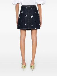 floral-embroidered denim skirt