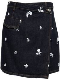 floral-embroidered denim skirt Highlights - Indigo blue - Cotton - Denim - Wrap design - Floral and logo embroidery - Belt loops - Front flap pocket - Asymmetric hem - Side button fastening Made in Italy Composition Cotton 100%, Polyester 100% SIZE & FIT Model measurements Height 5 ft 9 in(1.76 m) Bust/Chest 31.88 in(81 cm) Hips 35.43 in(90 cm) Waist 24.8 in(63 cm) FittingInformation This mini-length skirt is intended to be worn high on the waist Constructed from stretch denim, this piece offers a stretch fit with durability This piece fits true to size – take your usual size Washing instructions Machine Wash
