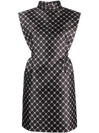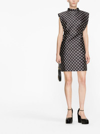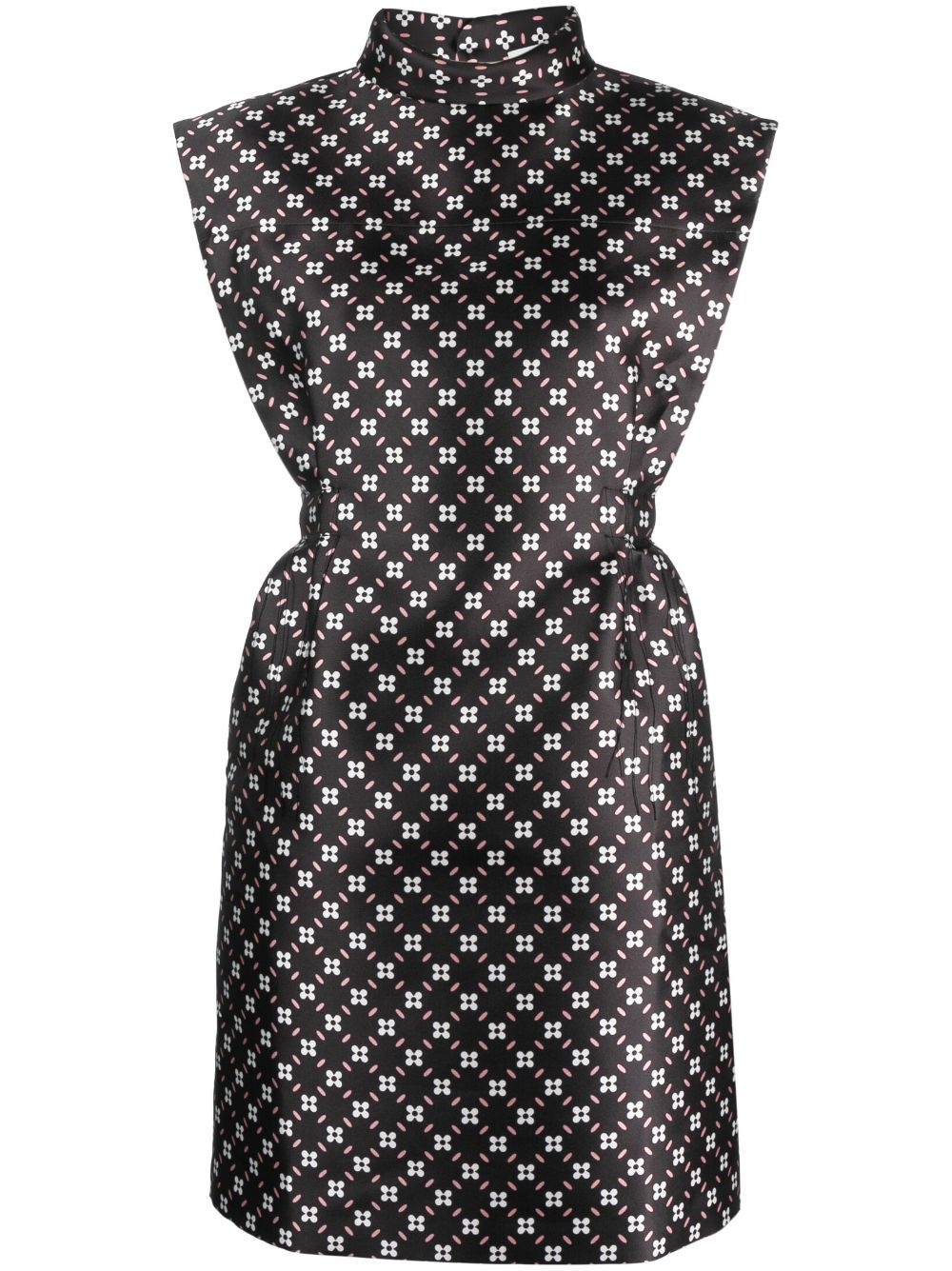 floral-print satin minidress Lanvin showcases a cheerful style with this dress from SS23. In a black hue, the satin garment is elevated by an elegant high neck and all-over floral pattern. Highlights - Black - Silk blend - Satin finish - All-over floral print - High neck - Shoulder pads - Sleeveless - Fitted waistline - Above-knee length Made in Italy Composition Outer: Polyester 76%, Silk 24% Lining: Cupro 100% SIZE & FIT Model measurements Height 5 ft 9 in(1.75 m) Bust/Chest 31.49 in(80 cm) Hips 34.05 in(86.5 cm) Waist 24.21 in(61.5 cm) FittingInformation Designed for a slim fit that sits just away from the body offering a close yet comfortable fit The dart stitching adds structure and a closer fit in the torso of this piece Made from a midweight non-stretch fabric This piece fits true to size – take your usual size Washing instructions Machine Wash