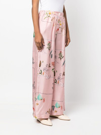 foliage-print silk palazzo trousers Lanvin's palazzo trousers are printed with painterly foliage and animal motifs that pop against the rose-pink background. This high-rise pair is cut from lustrous silk-satin. Made in Italy Composition Lining: Cupro 100% Outer: Silk 100% SIZE & FIT Model measurements Height 5 ft 10 in(1.79 m) Bust/Chest 33.07 in(84 cm) Hips 35.03 in(89 cm) Waist 24.4 in(62 cm) FittingInformation This piece fits true to size. We recommend you get your regular size Designed to be fitted at the waist and hips, loose over the leg Made with a mid-weight fabric Washing instructions Specialist Cleaning