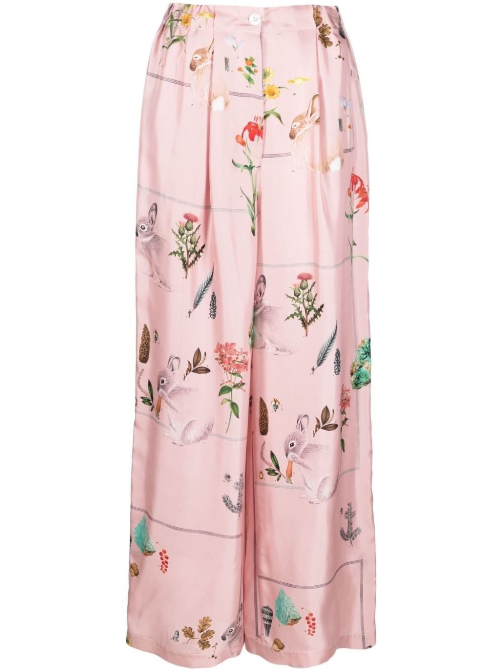 foliage-print silk palazzo trousers