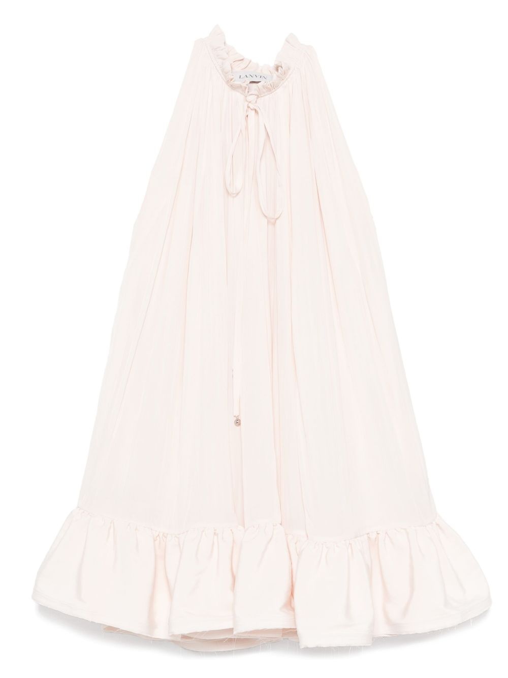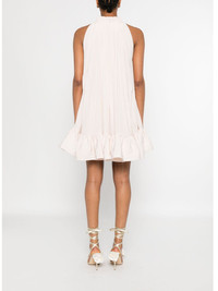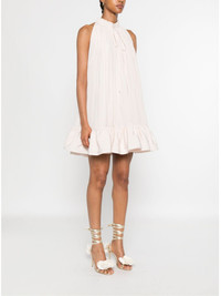 frill-neck ruffled mini dress Highlights - Light pink - Ruffled hem - Frilled high neck - Self-tie fastening - Sleeveless Imported Composition Polyester 100% SIZE & FIT Model measurements Height 5 ft 10 in(1.77 m) Bust/Chest 33.07 in(84 cm) Hips 37 in(94 cm) Waist 24.8 in(63 cm) FittingInformation Designed to be unstructured, offering a loose fit throughout Made from a midweight non-stretch fabric Washing instructions Specialist Cleaning
