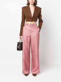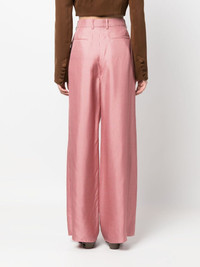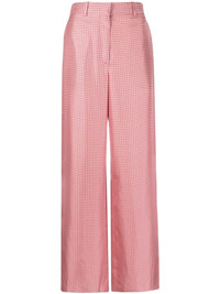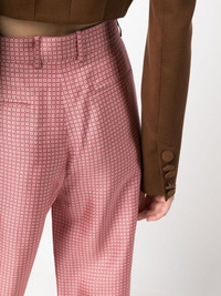 geometric-print wide-leg silk trousers Highlights - Blush pink/wine red - Silk - Geometric print - High waist - Belt loops - Hook and zip fly fastening - Two side slash pockets - Two rear welt pockets - Wide leg - Unlined - Partial cotton lining Made in Italy Composition Outer: Silk 100%, Bone 100% Lining: Cotton 100% SIZE & FIT Model measurements Height 5 ft 10 in(1.79 m) Bust/Chest 32.67 in(83 cm) Hips 34.25 in(87 cm) Waist 24.4 in(62 cm) FittingInformation Designed with a wide-leg cut, these trousers allow for a close fit at the waist and offer a loose and roomy fit over the leg Made from a lightweight non-stretch fabric This piece fits true to size – take your usual size Washing instructions Dry Clean Only