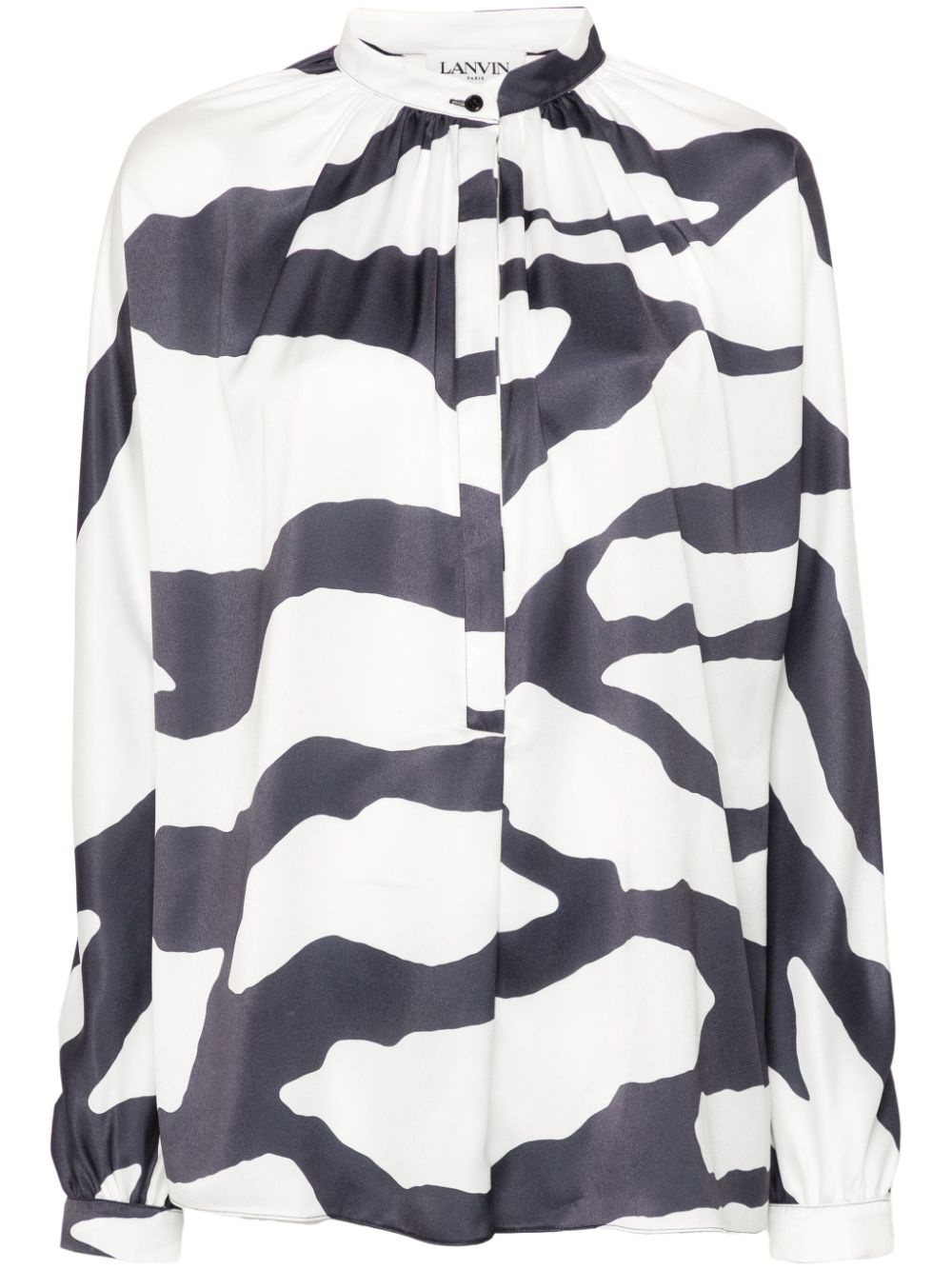 graphic-print blouse Highlights - White/japanese ink blue - Satin finish - All-over graphic print - Gathered detailing - Long sleeves - Buttoned cuffs - Straight hem Imported Composition Polyester 100% SIZE & FIT Model measurements Height 5 ft 11 in(1.8 m) Bust/Chest 32.67 in(83 cm) Hips 35.82 in(91 cm) Waist 25.98 in(66 cm) FittingInformation Designed to be unstructured, offering a loose fit throughout Made from a lightweight non-stretch fabric This piece fits true to size – take your usual size Washing instructions Dry Clean Only