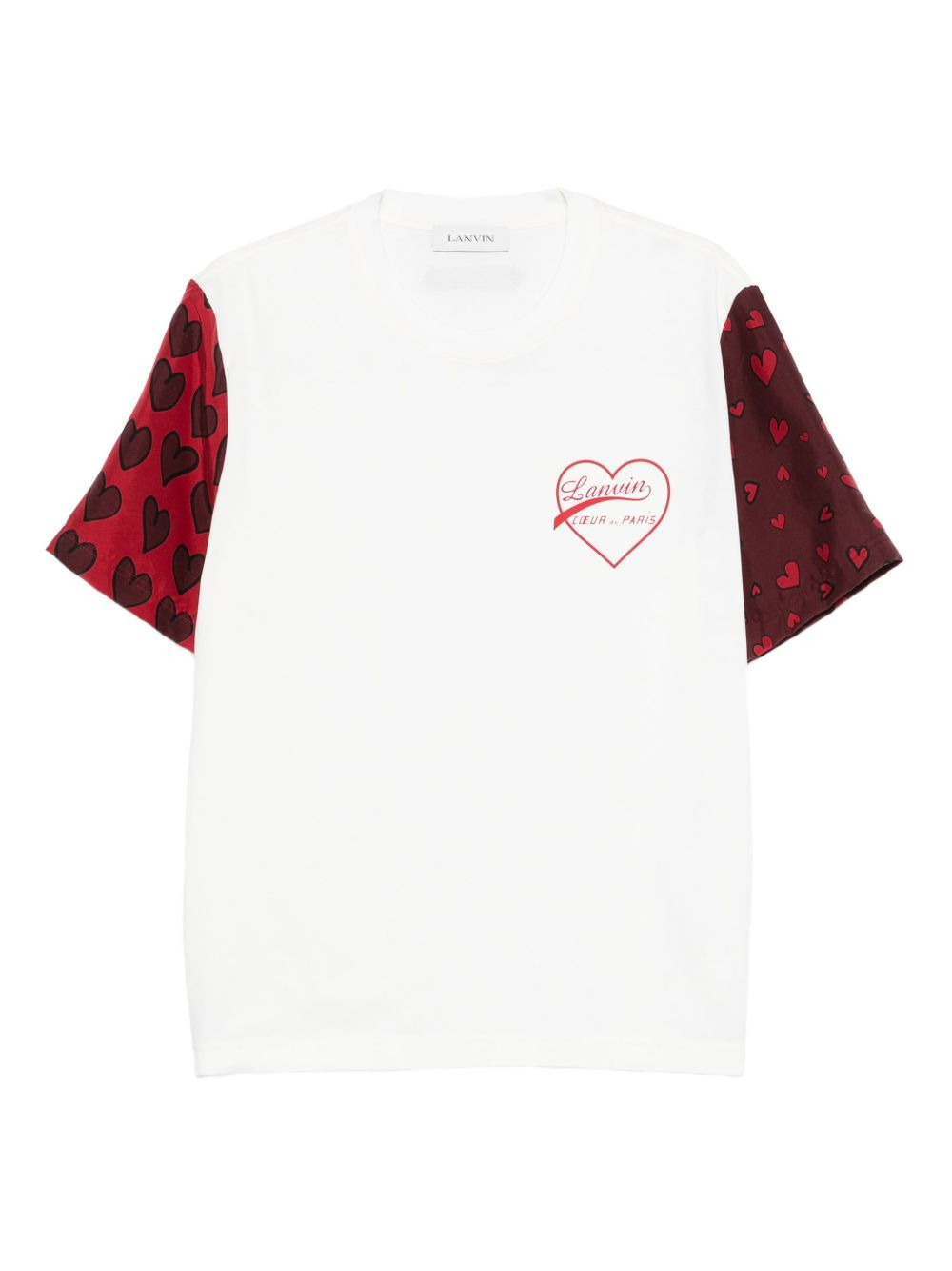 heart-print T-shirt Highlights - Off-white - Short sleeves - Crew neck - Graphic print Imported Composition Cotton 70%, Silk 30% SIZE & FIT Model measurements Height 6 ft 2 in(1.87 m) Bust/Chest 36.41 in(92.5 cm) Hips 37 in(94 cm) Waist 29.52 in(75 cm) Washing instructions Read Manufacturer Guidelines