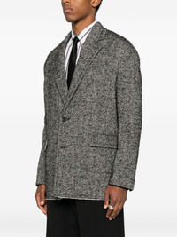 herringbone two-button blazer Highlights - Black and white - Herringbone pattern - Two-button fastening - Notched lapels - Front flap pockets - Buttoned cuffs Made in Italy Composition Outer: Buffalo Horn 100%, Virgin Wool 87%, Polyamide 9%, Polyester 4% Lining: Cotton 100%, Acetate 65%, Viscose 35% SIZE & FIT Model measurements Height 6 ft 1 in(1.85 m) Bust/Chest 38.58 in(98 cm) Hips 37 in(94 cm) Waist 30.31 in(77 cm) Washing instructions Dry Clean Only