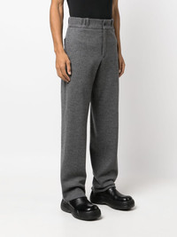 high-rise straight-leg trousers True to Lanvin's effortless Parisian style, these trousers boast a relaxed straight-leg silhouette. They are crafted from virgin wool and feature a comfortable elasticated waistband. Highlights - Dark grey - Virgin wool - Melange effect - Belt loops - Pressed crease - High-waisted - Straight leg - Elasticated waistband - Front button and zip fastening - Two side slit pockets - Rear patch pocket - Rear welt pocket Made in Italy Composition Outer: Buffalo Horn 100%, Virgin Wool 100% Lining: Cotton 100% SIZE & FIT Model measurements Height 6 ft 2 in(1.87 m) Bust/Chest 38.18 in(97 cm) Hips 36.61 in(93 cm) Waist 29.13 in(74 cm) FittingInformation Designed for a straight-leg, allowing for an unrestricted and comfortable fit over the leg The partially elasticated waistband offers increased movement and comfort at the waist Made from a midweight non-stretch fabric This piece fits true to size – take your usual size Washing instructions Dry Clean Only