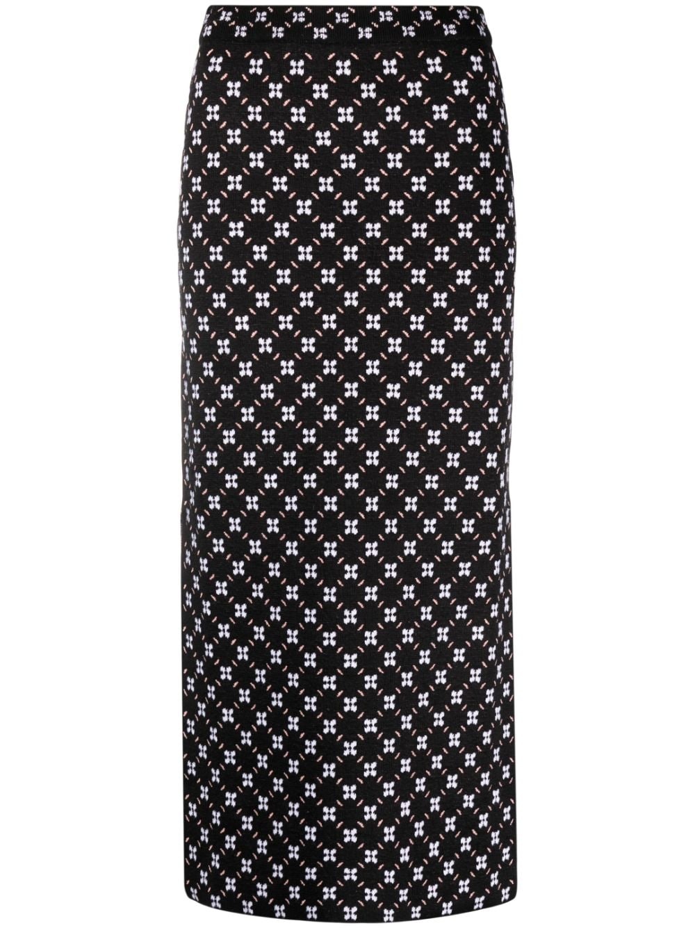 jacquard knitted skirt Renowned for ageless elegance with a modern edge, France's oldest couture house Lanvin presents this soft knitted skirt for SS23. A patterned jacquard design adorns the midi garment, standing out against the solid black background. Highlights - Black/multicolour - Knitted construction - Patterned jacquard - High-waisted - Elasticated waistband - Mid-length - Straight hem Imported Composition Viscose 34%, Silk 30%, Linen/Flax 27%, Polyamide 9% SIZE & FIT Model measurements Height 5 ft 10 in(1.78 m) Bust/Chest 31.49 in(80 cm) Hips 35.03 in(89 cm) Waist 23.62 in(60 cm) FittingInformation This midi-length skirt is intended to be worn high on the waist Made with a midweight knit, this piece offers some stretch This piece fits true to size – take your usual size Washing instructions Hand Wash